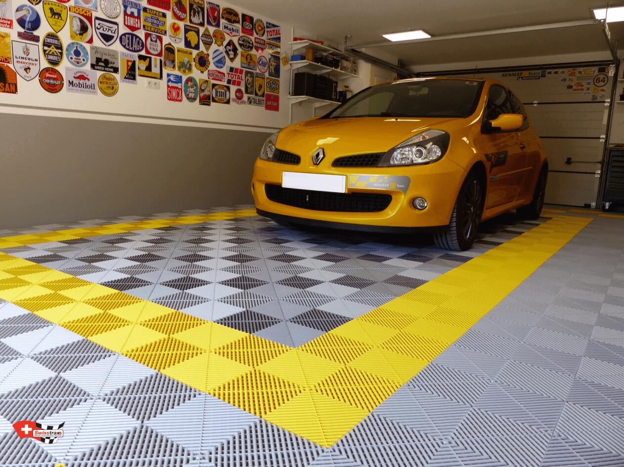 Les dalles de garage SWISSTRAX sont faciles à entretenir, avec un coût d’entretien réduit. La garantie des dalles est de 15 ans pour un garage de particulier. Contrairement aux sols enduits d’époxy, les dalles SWISSTRAX ne pèlent pas, ne s’écaillent pas et ne se décolorent pas. Si vous endommagez une dalle ou si vous souhaitez modifier un design, les fixations des dalles clipsables Swisstrax vous permettent d’échanger et de remplacer facilement les dalles. Pour le nettoyage un simple coup d’aspirateur et de serpillère comme pour un carrelage classique suffisent. Les colorants utilisés dans la fabrication dans notre usine dans les Hauts-de-France sont également français. Cela signifie que les couleurs sont stables et seront identiques à chaque livraison.