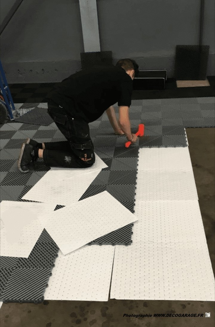 Vous pouvez installer ces feuilles selon 3 méthodes, ou 2 si votre garage est équipé de dalles de sol clipsables ajourées.