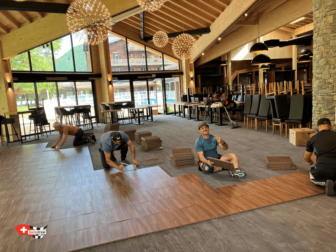 Les sols de danse SWISSTRAX s’installent par simple clipsage, aucun collage. Vous posez directement vos dalles sur votre sol et vous les clipser par simple pression de la main. Une pose confortable grâce au poids optimisé de chaque dalle de sol, environ 1 Kg par dalle. Une mise en place rapide et facile, une piste de danse amovible de 16m2 s’installe en +-15 minutes seulement ! Le démontage ? facile il suffit juste de declipser vos dalles et de les remiser. Montage démontage à volonté grâce au système de fixation renforcé. Utilisation privée ou professionnelle, ces dalles vous séduiront par leur coté confort et rapidité de mise en place.